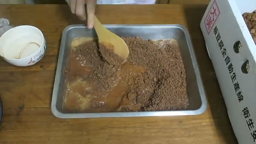 6. 把第二步驟剩餘的高粱酒均勻地混合在紅土裡,適度塗抹於包覆好紅土的鴨蛋表面